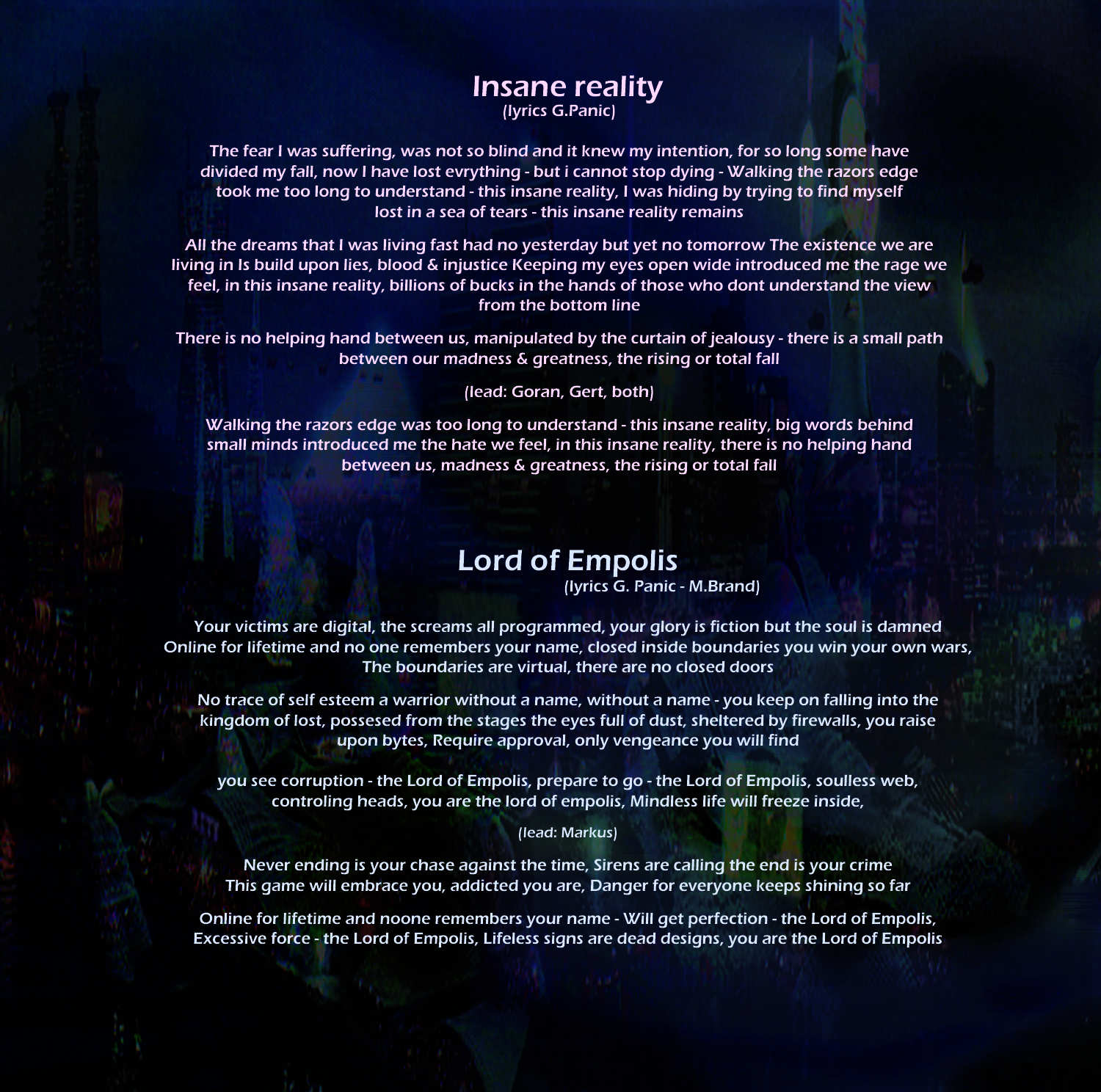 music & lyrics: Goran Panić