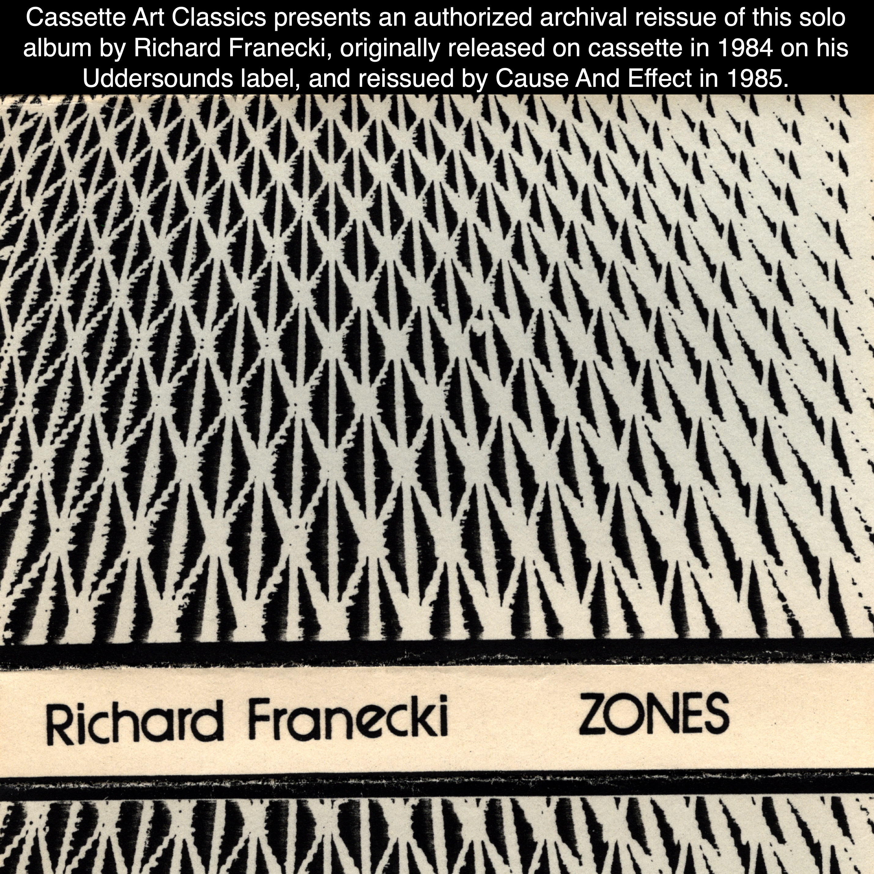 On January 8, 2026 I digitized the copy of Zones that Richard Franecki sent to us at Cause And Effect in 1985. The cassette is marked as “Master”, and it is the tape that Debbie Jaffe and I used to duplicate copies whenever we received an order for it.