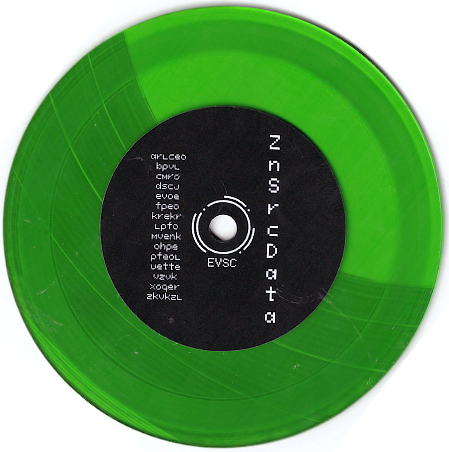 1/1 copy that plays at 33 RPM and has random off-center grooves on the other side.