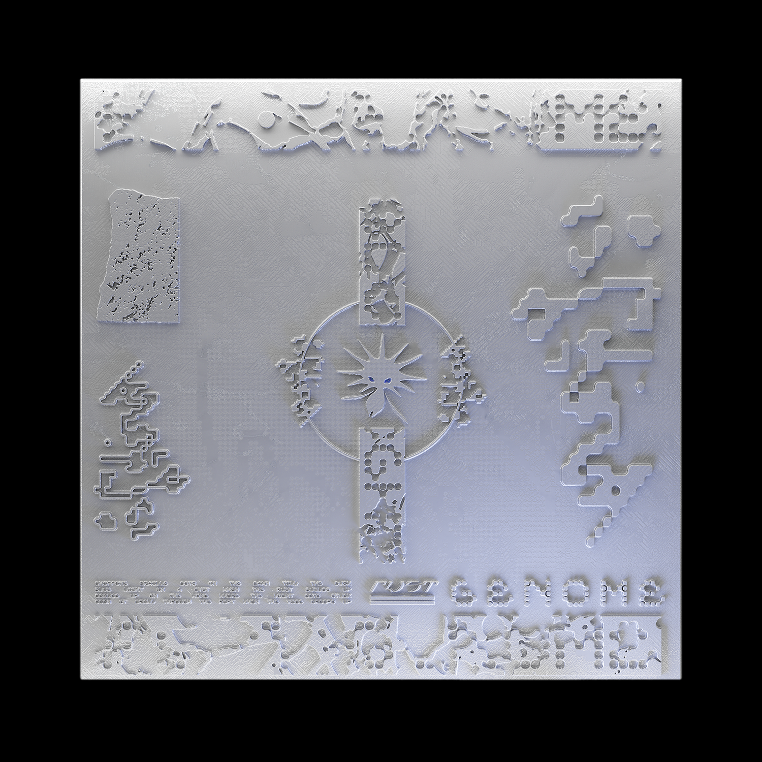 Rust Genome was first heard when the ESPI Storm Network (an emergency weather channel) was hacked. A rogue group of drifters compromised the airwaves and used it to broadcast their demo tunes. Similar illegal transmissions are becoming more & more frequent. Rumours claim that these pirate broadcasters are sneaking genetic data into their music, & are attempting to lead listeners to washed-up remnants of mysterious azure-coloured sprites.