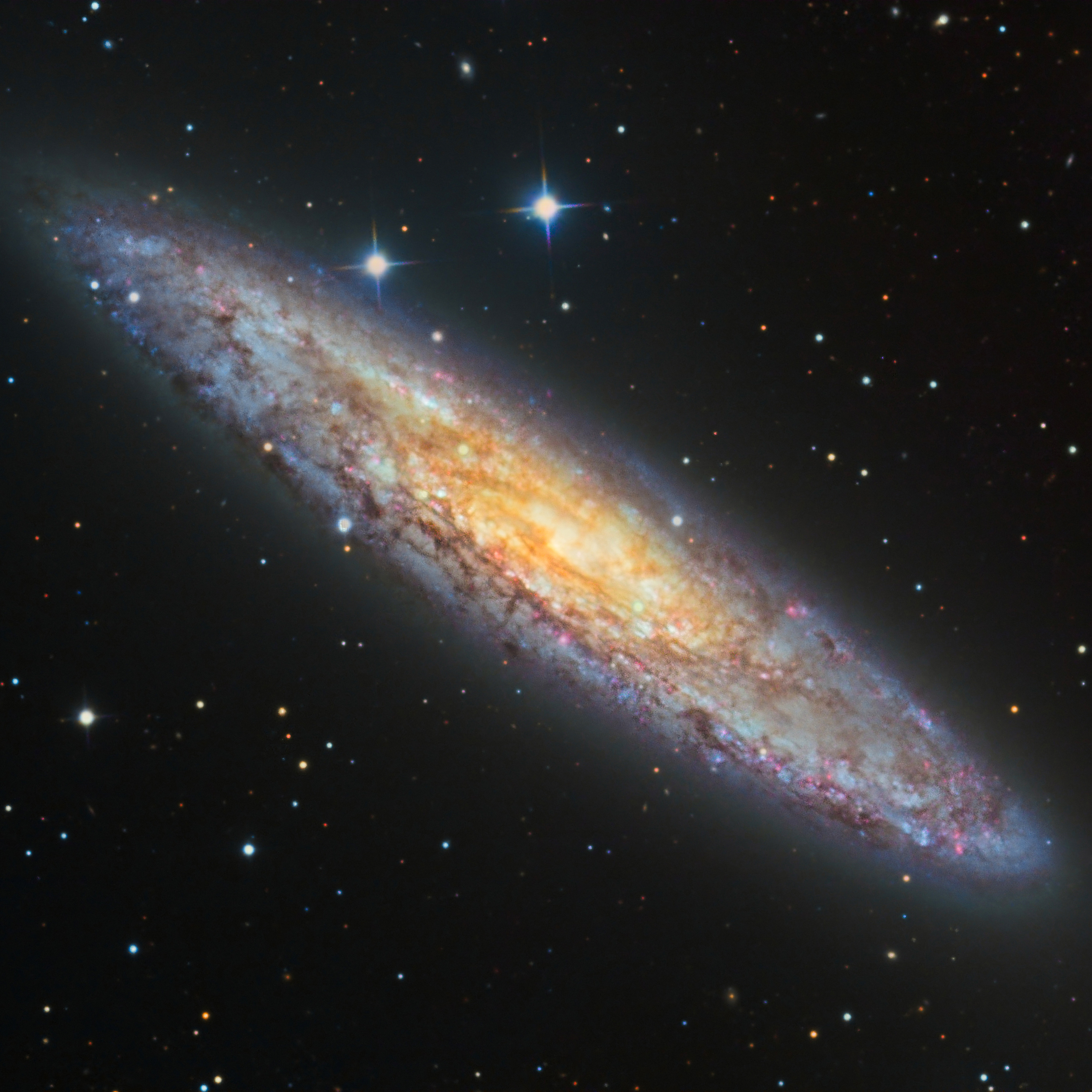 - Cover image of NGC253 galaxy by Pfirter. Situated 11 million light-years away in the constellation Sculptor, this photograph captures a starburst galaxy currently undergoing a period of intense star formation. -