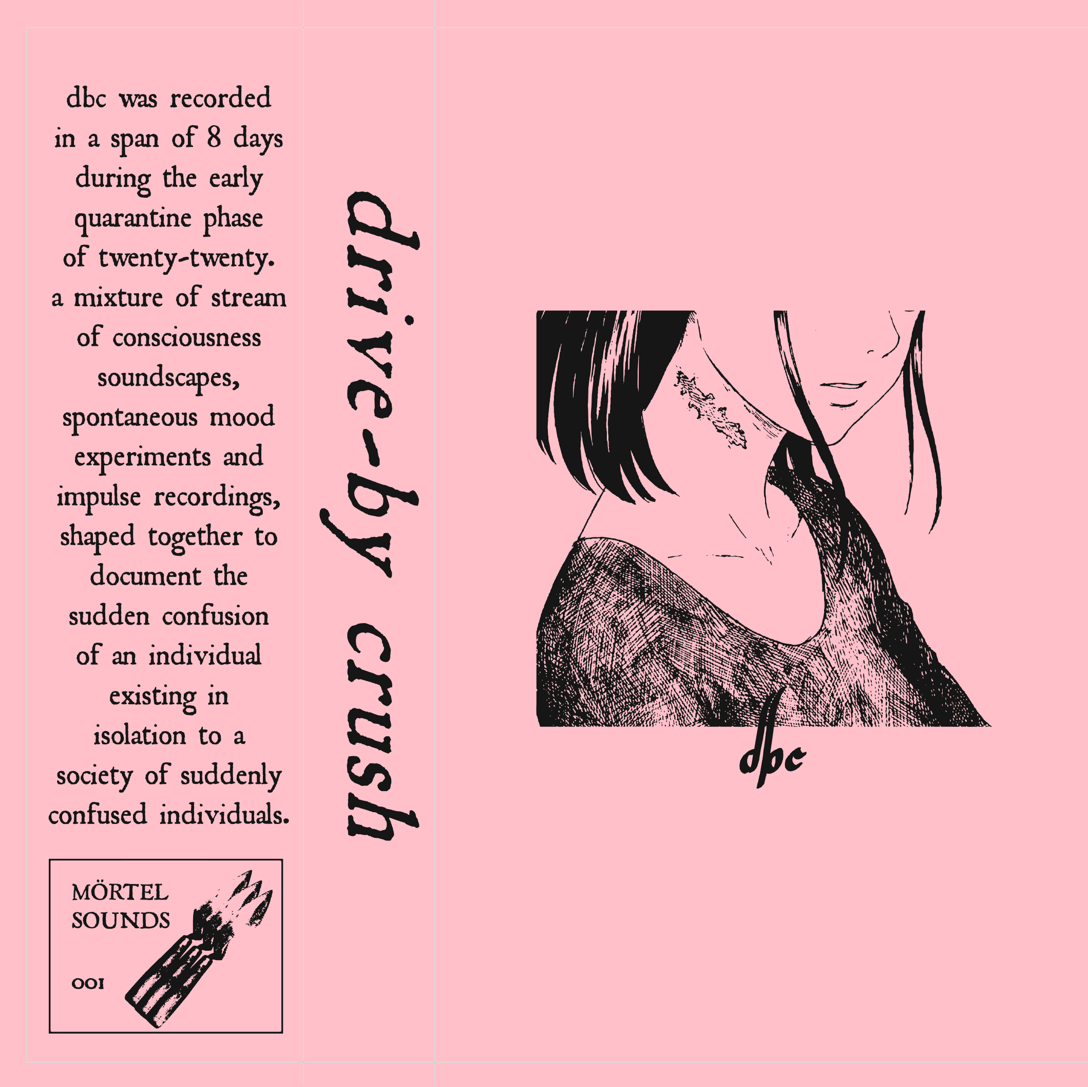 dbc was recorded in a span of 8 days during the early quarantine phase of twenty-twenty. a mixture of stream of consciousness soundscapes, spontaneous mood experiments and impulse recordings, shaped together to document the sudden confusion of an individual existing in isolation to a society of suddenly confused individuals.