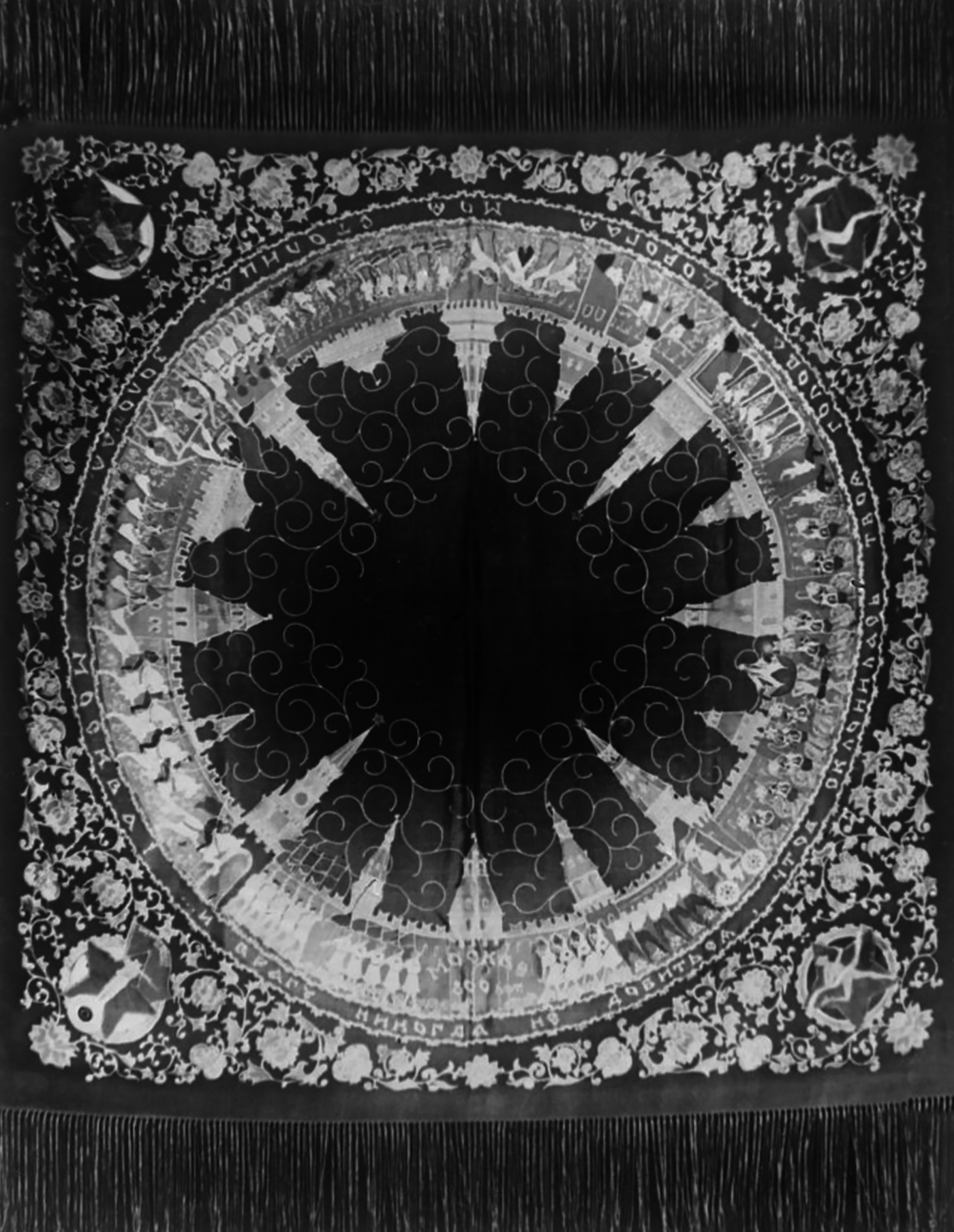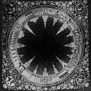 изображение на обложке: Негатив. Автор Вульфиус М.А. Платок на абажур "800 лет Москве". Крепдешин, горячий батик. Москва. 1947 г.