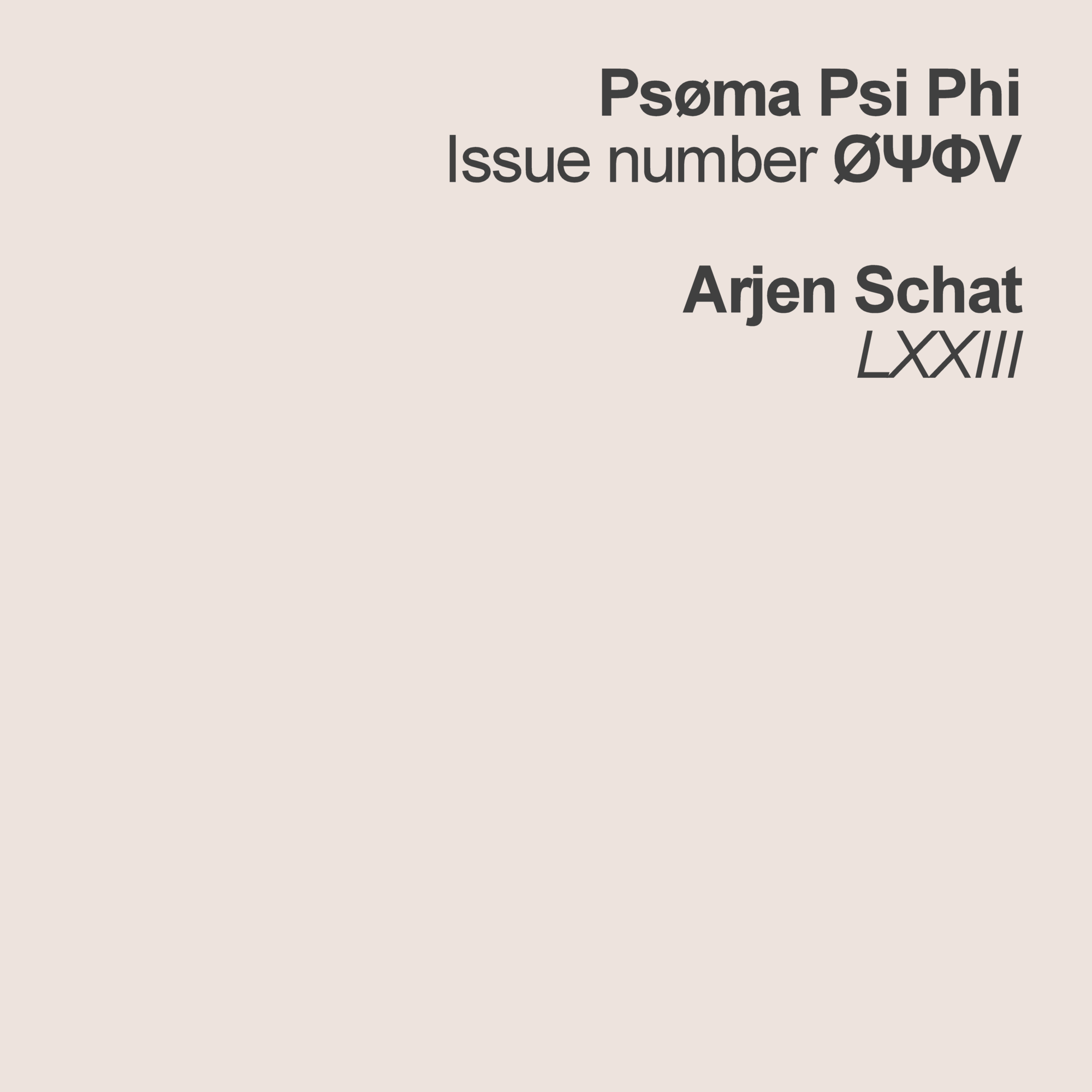 W/P by Arjen Schat. Recorded at Infraklang, 2017. Text and design by ABM&D. This is Psøma Psi Phi number ØΨΦV.