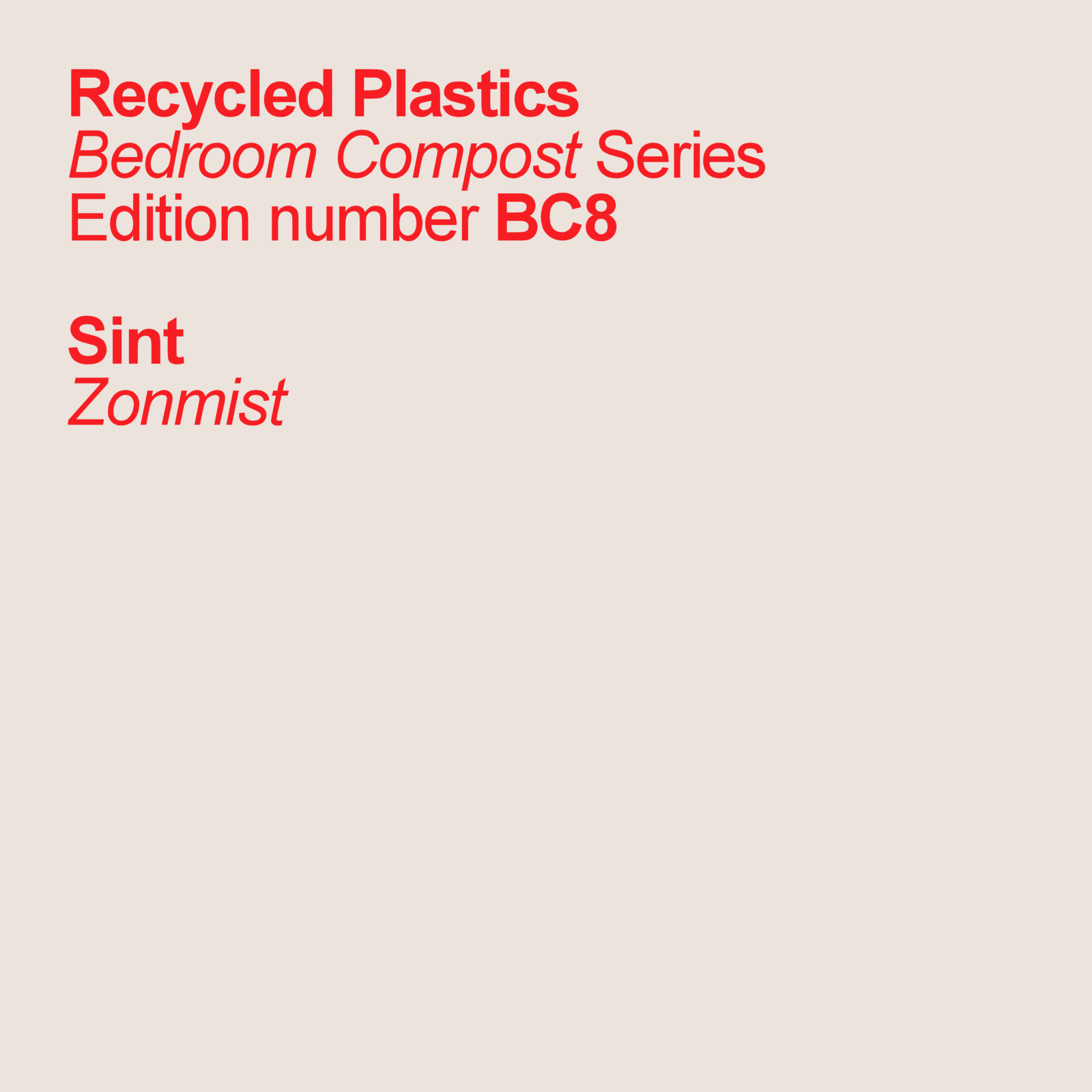 W/P by Niek Brouwer. Mastered by The Analog Botanist. This is Recycled Plastics number BC8. Eighth in the Bedroom Compost series.