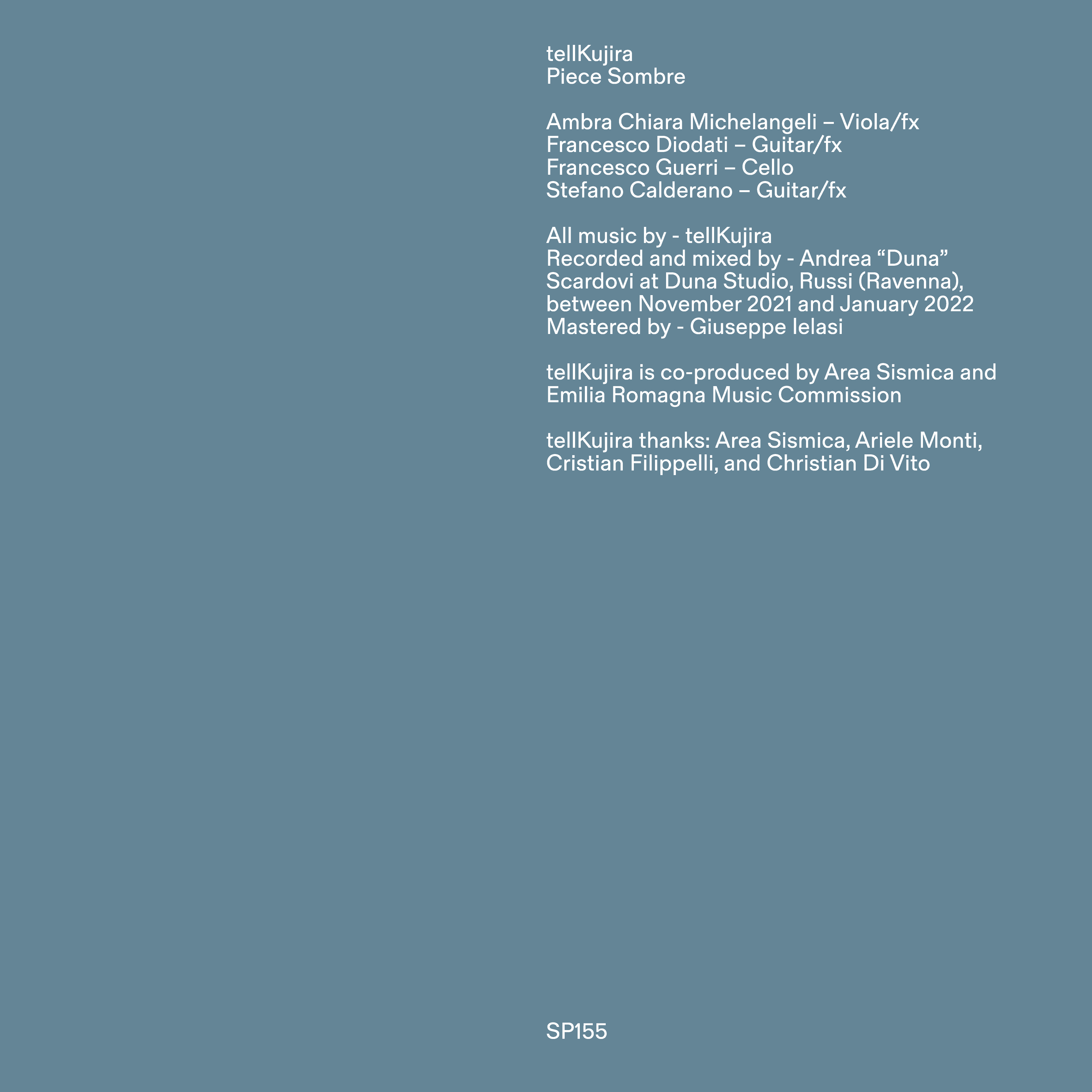 Recorded and mixed by Andrea “Duna” Scardovi at Duna Studio, Russi (Ravenna) between November 2021 and January 2022