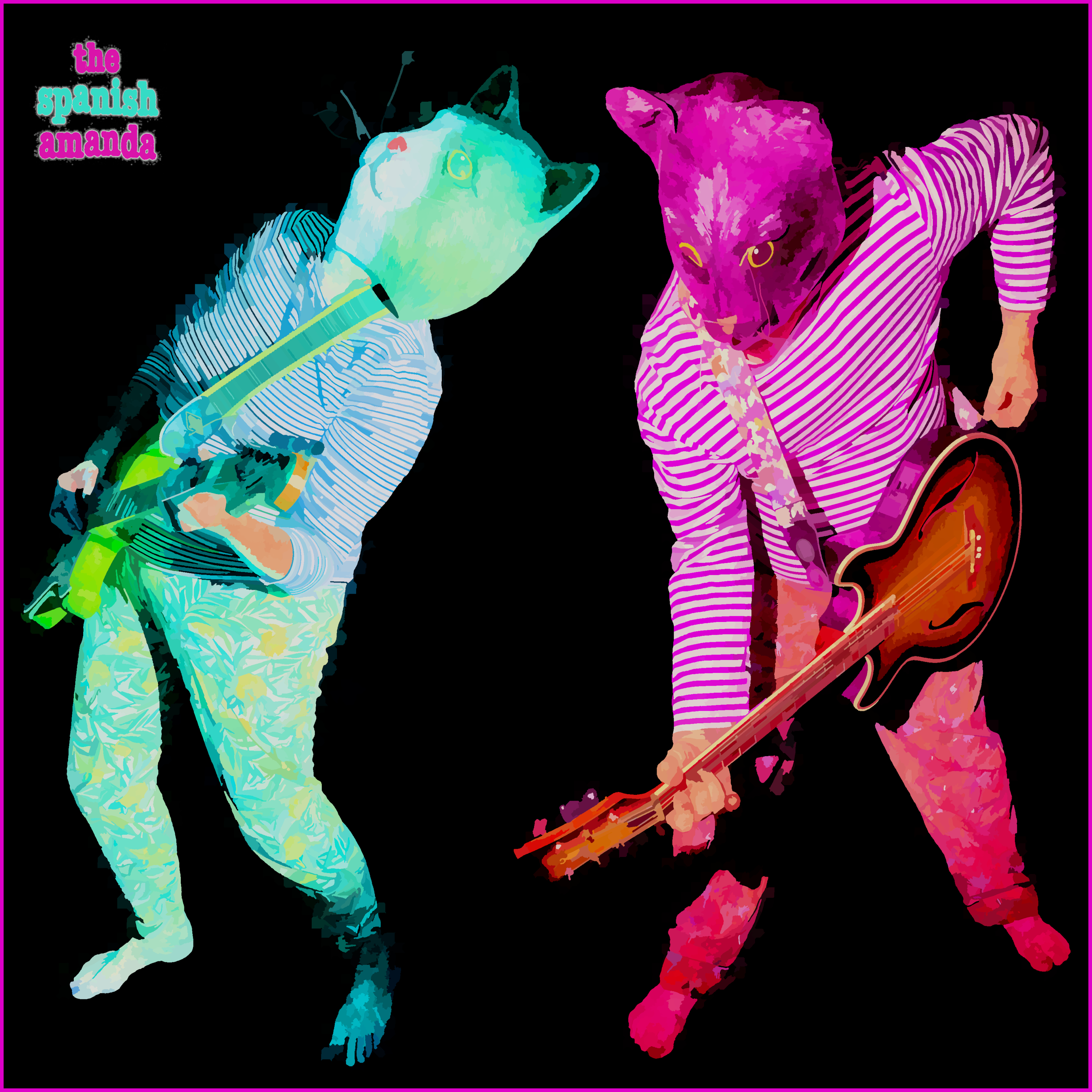 On this occasion, the Spanish Amanda were mostly Huw, Ivan and Annik. Recorded at the JJ Sefton Memorial Studio, organ parts recorded with Annik in The Donnerie. The black intrusion at the top-left of the sleeve is the face of the Darling family cat... and no, he wasn't allowed access to any prescription painkillers... and he *does* keep asking... the little scamp.